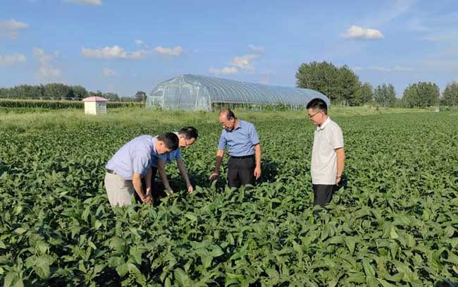 在碭山、蒙城、埇橋分別針對碭山酥梨、埇橋大豆制種、蒙城蔬菜(西蘭花)等不同場景通過走訪、座談等方式充分了解當地農業部門和相關農業經營主體對智慧農業氣象服務的需求;其中對預報的準確性和及時性、田塊級別的氣象要素實時監測以及作物病蟲害氣象風險預測等需求較為迫切。另外調研組同當地農技專家一起察看在地作物長勢,大部分田塊通過及時灌溉降溫補墑,大豆和玉米等旱作物長勢總體較好,但部分墑情不足的田塊,受高溫干旱疊加影響,長勢較差,對后期作物生長發育和產量形成有一定的不利影響。